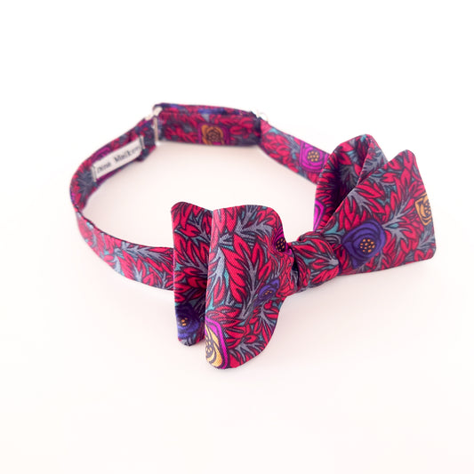 Maroon grey navy blue and purple floral vintage silk bow tie