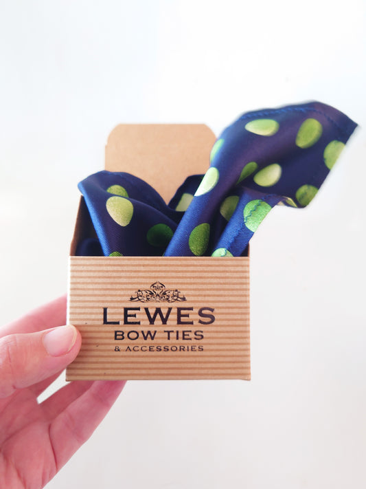 Navy and green large polka dot silk pocket square